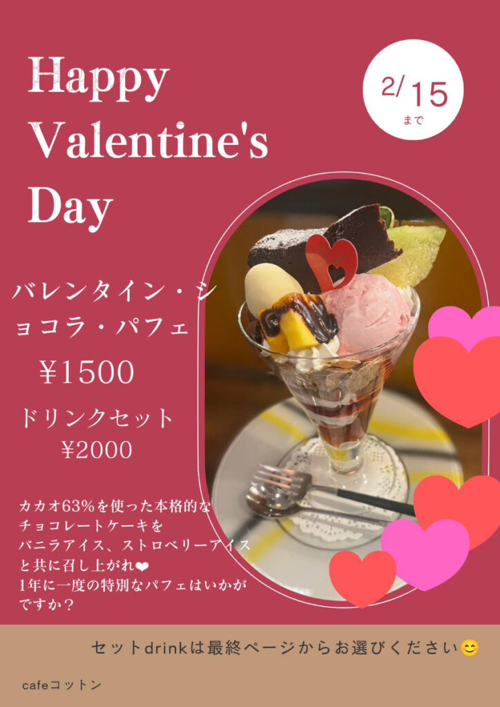 バレンタインメニューについてのお知らせ